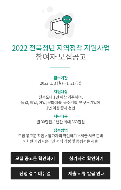 2022년 전북 청년 지역정착 지원사업 참여자 모집 공고 입니다.