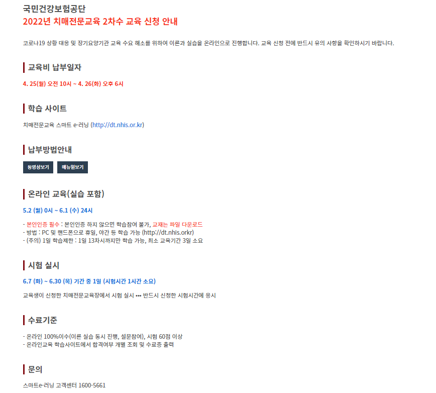 치매교육 스마트 e-러닝 고객센터 문의전화 1600-5661