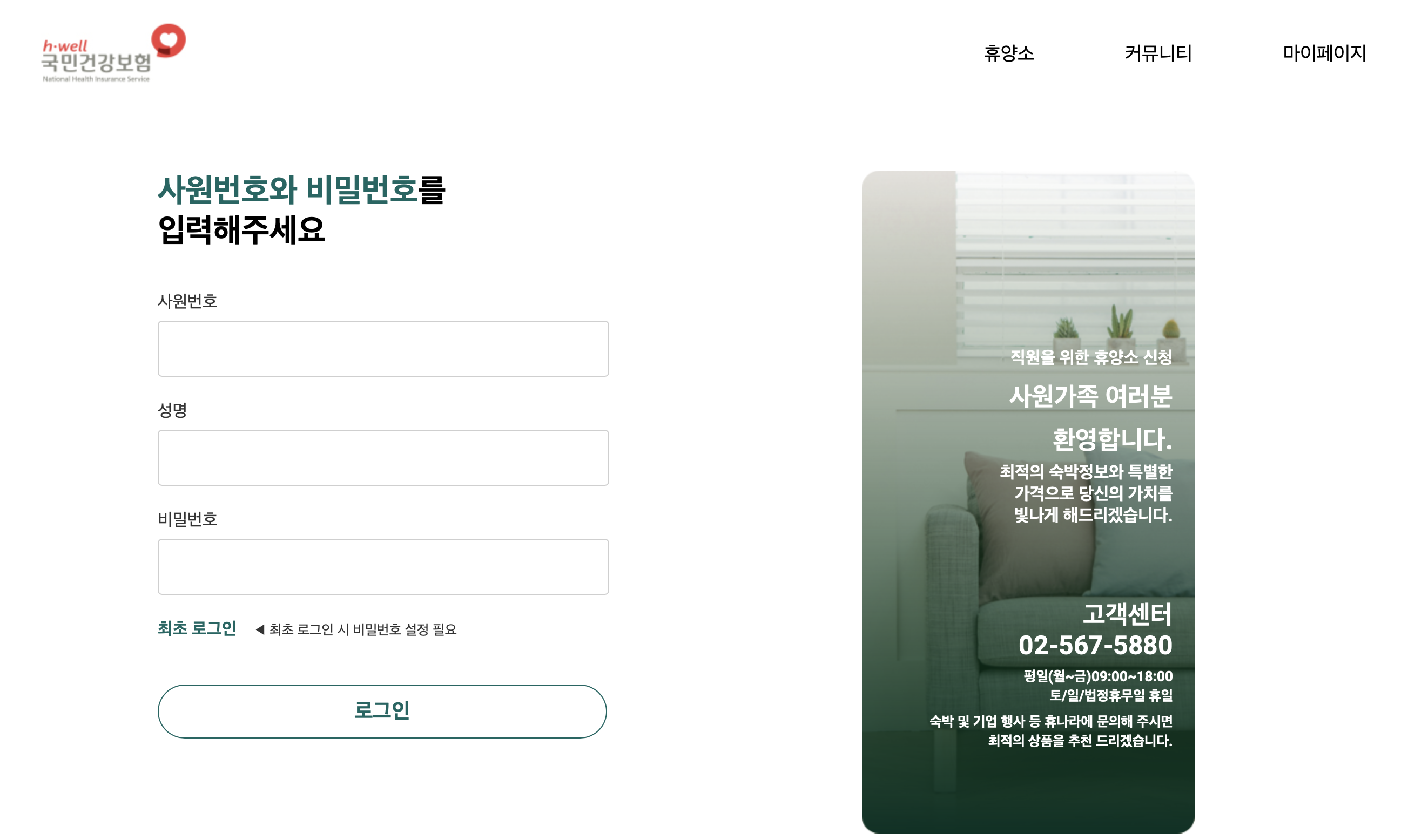 국민건강보험 직원을 위한 휴양소 신청 - 사원가족 여러분 환영합니다.