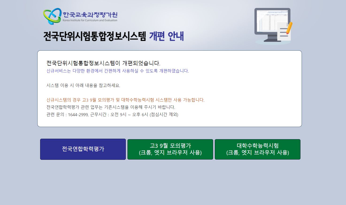 전국연합학펵평가 관련 업무는 기존 시스템을 이용하시기 바랍니다.