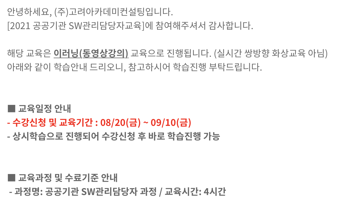 고려아카데미 컨설팅 - 2021 공공기관 SW 관리담당자교육