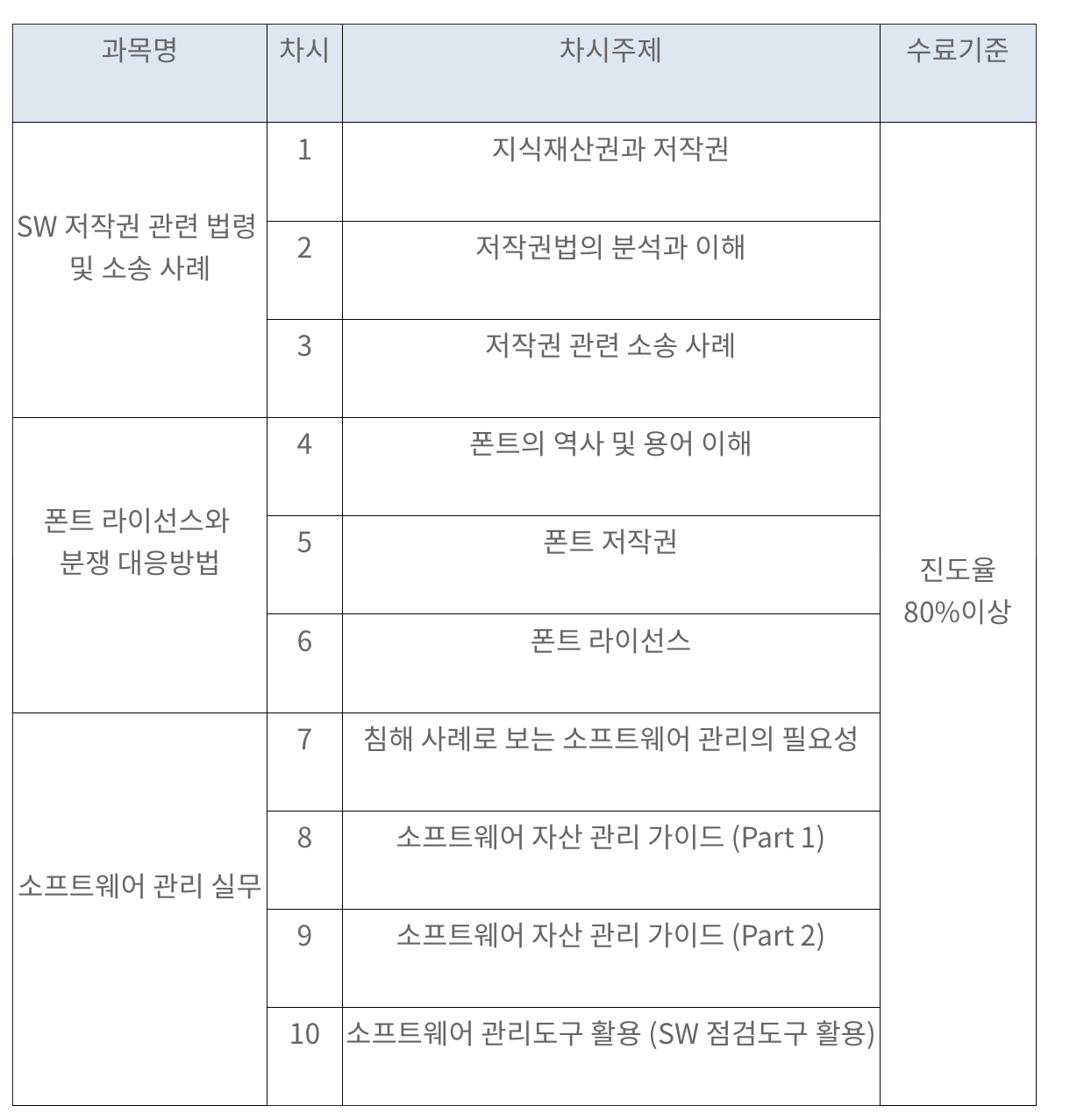 수강신청 및 교육기간은 8월 29일 금요일 ~ 9월 10일 금요일로 상시학습으로 진행됩니다.