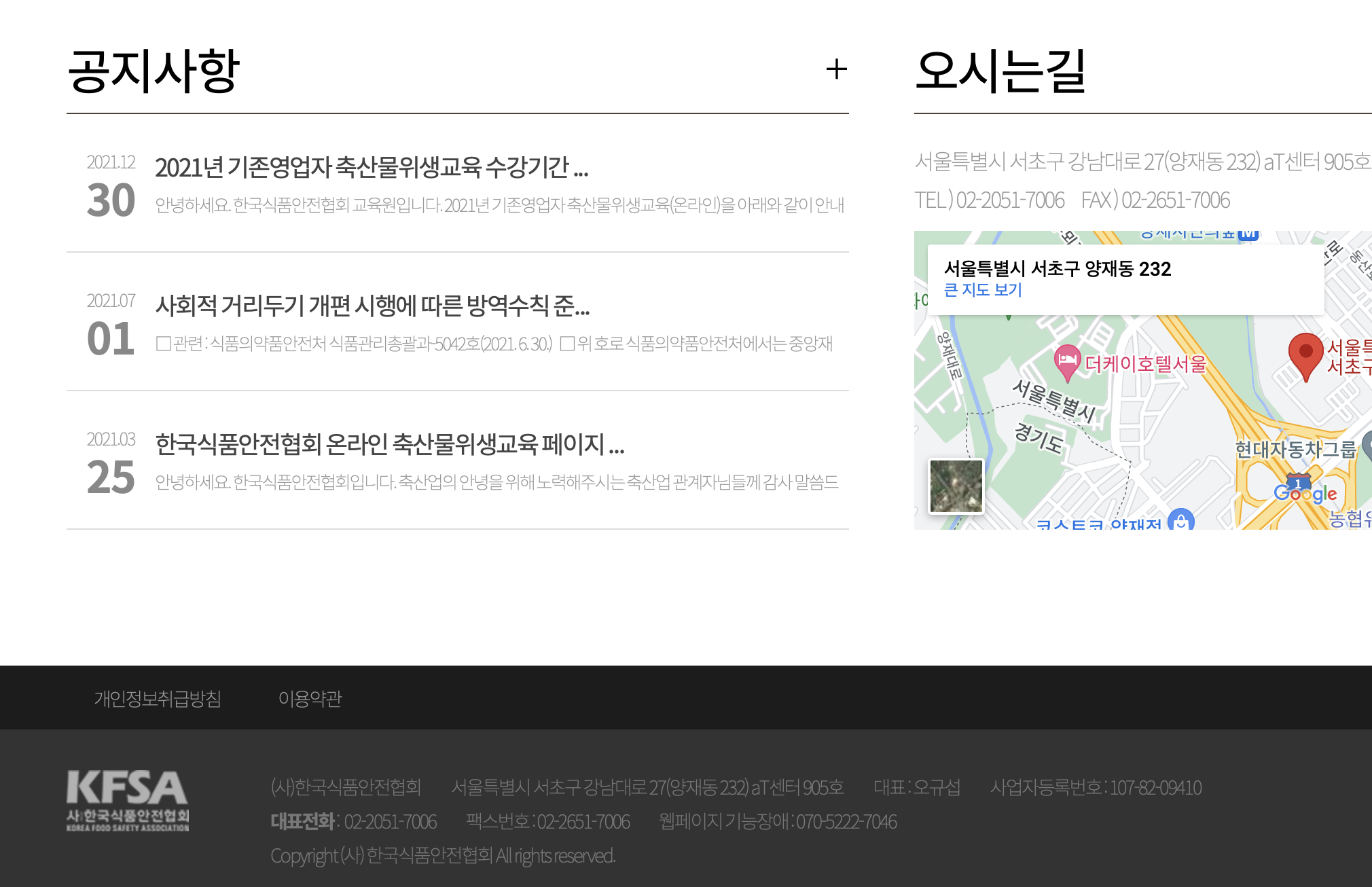 한국식품안전협회 전화문의 02-2051-7006