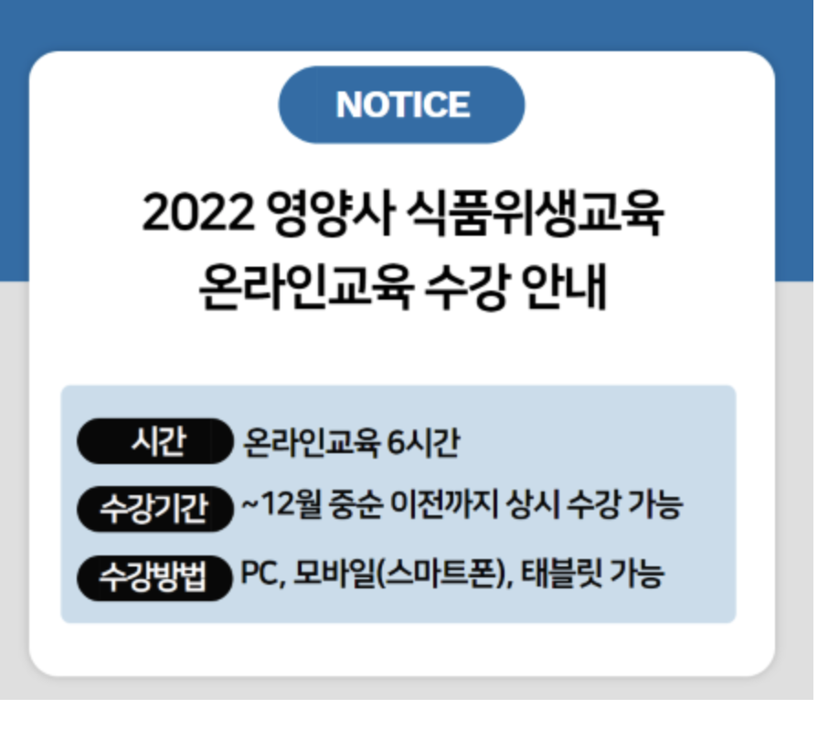 집단급식소에 종사하는 영양사 온라인 위생교육 입니다.