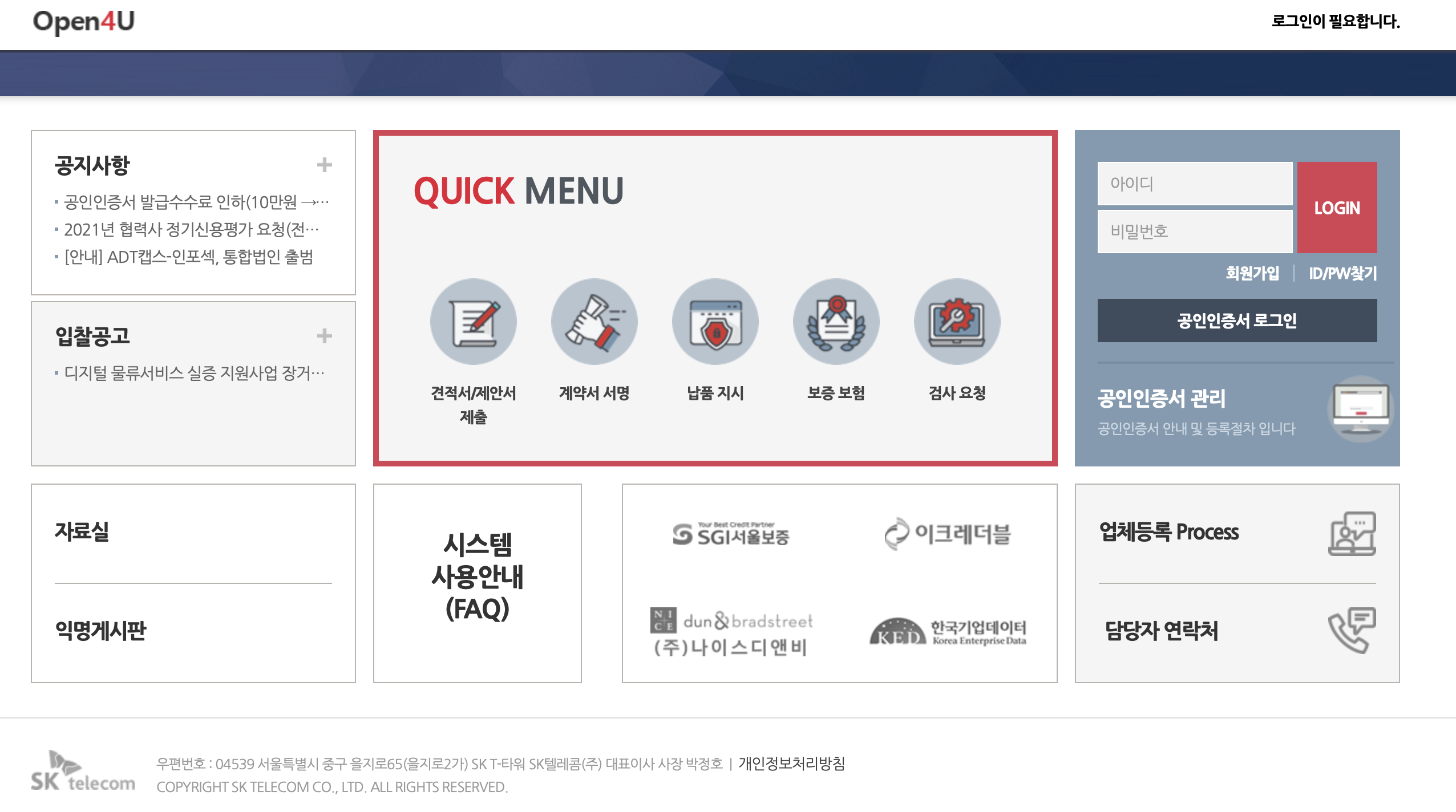 SK 통합구매 시스템 (https://open4u.sk.com)