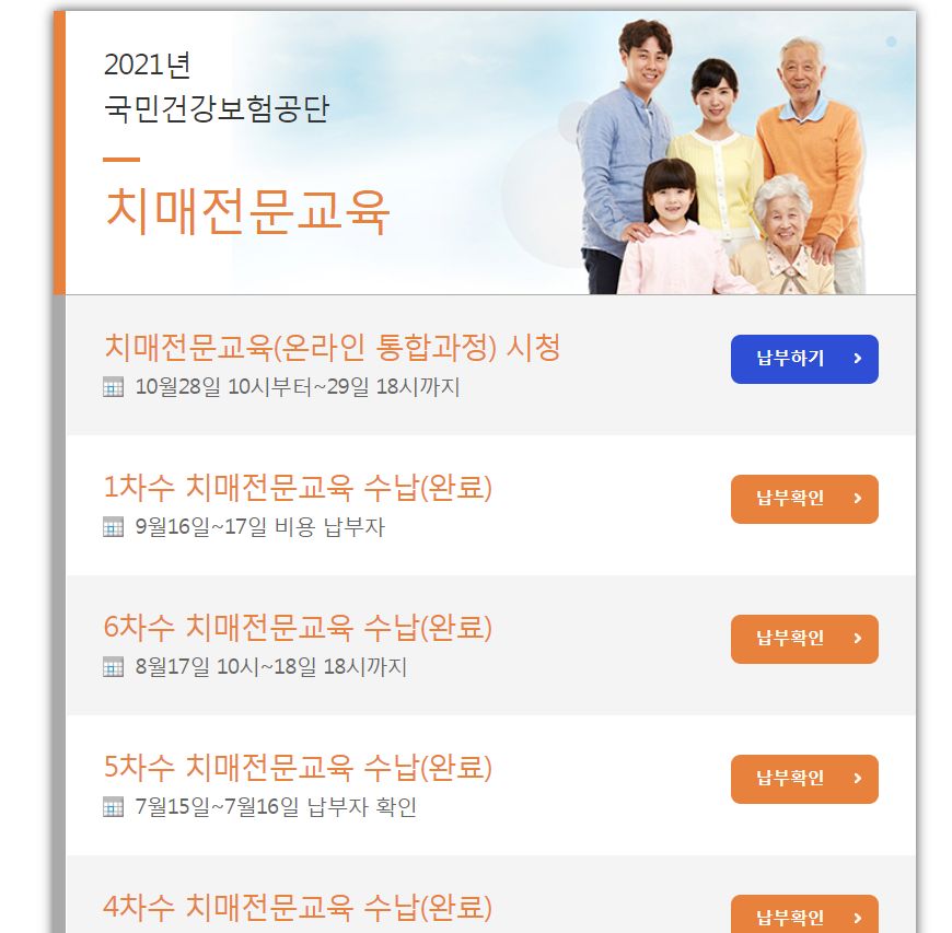 [공지] 2021년 10월 치매전문교육 특별 온라인통합과정 신청/교육비납부/스마트e러닝 학습사이트 /